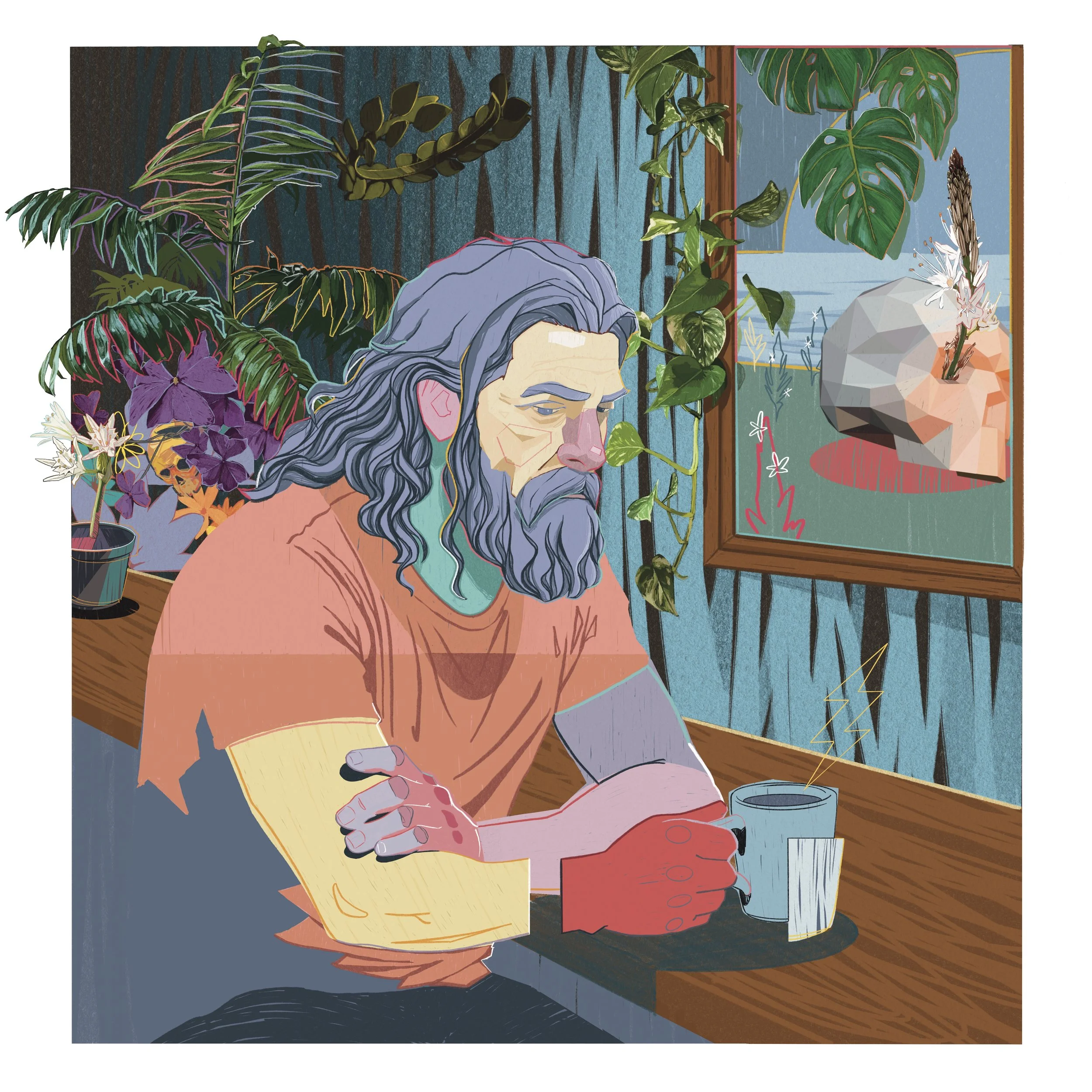 Esta serie propone un viaje a un Olimpo diferente: un universo donde las deidades clásicas descienden de su pedestal y se mezclan con lo cotidiano. Las ilustraciones muestran a los dioses y diosas en escenas costumbristas, atrapados en rutinas humanas que, sin embargo, revelan tensiones ocultas.